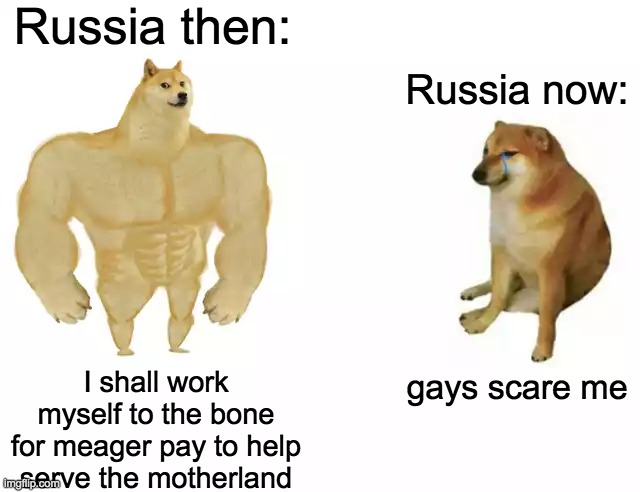Strong doge and cheems meme. The format gained popularity in mid may and almost a month later it s still going strong. Cheems is another shiba inu doge meme who according to know your meme is known for liking cheeseburgers which it pronounces cheemsburger. Buff doge also known as swole doge comes from the r dogelore subreddit and gives an extremely muscular and human like body to the internet famous shiba inu known as doge. In the case of swole doge and cheems memes the figures tend to represent countries and cultures and highlight how their power or effectiveness has supposedly waned compared to previous eras.